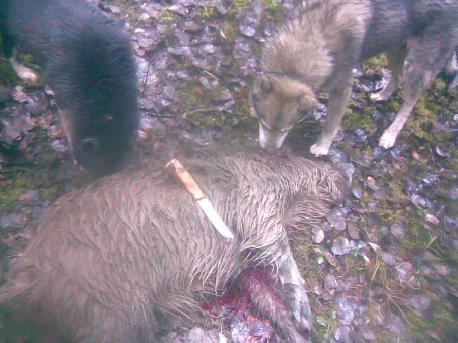 Кабанчиик пойман Аганом весом около 60 кг. Уши были оторваны полностью. Помогла русско-европейская сука Айна.