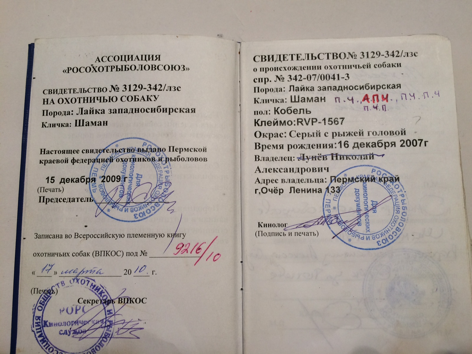 ЗСЛ АПЧ,ПЧ ШАМАН 9216/10 вад .Кириленко С.А. ранее Лунев